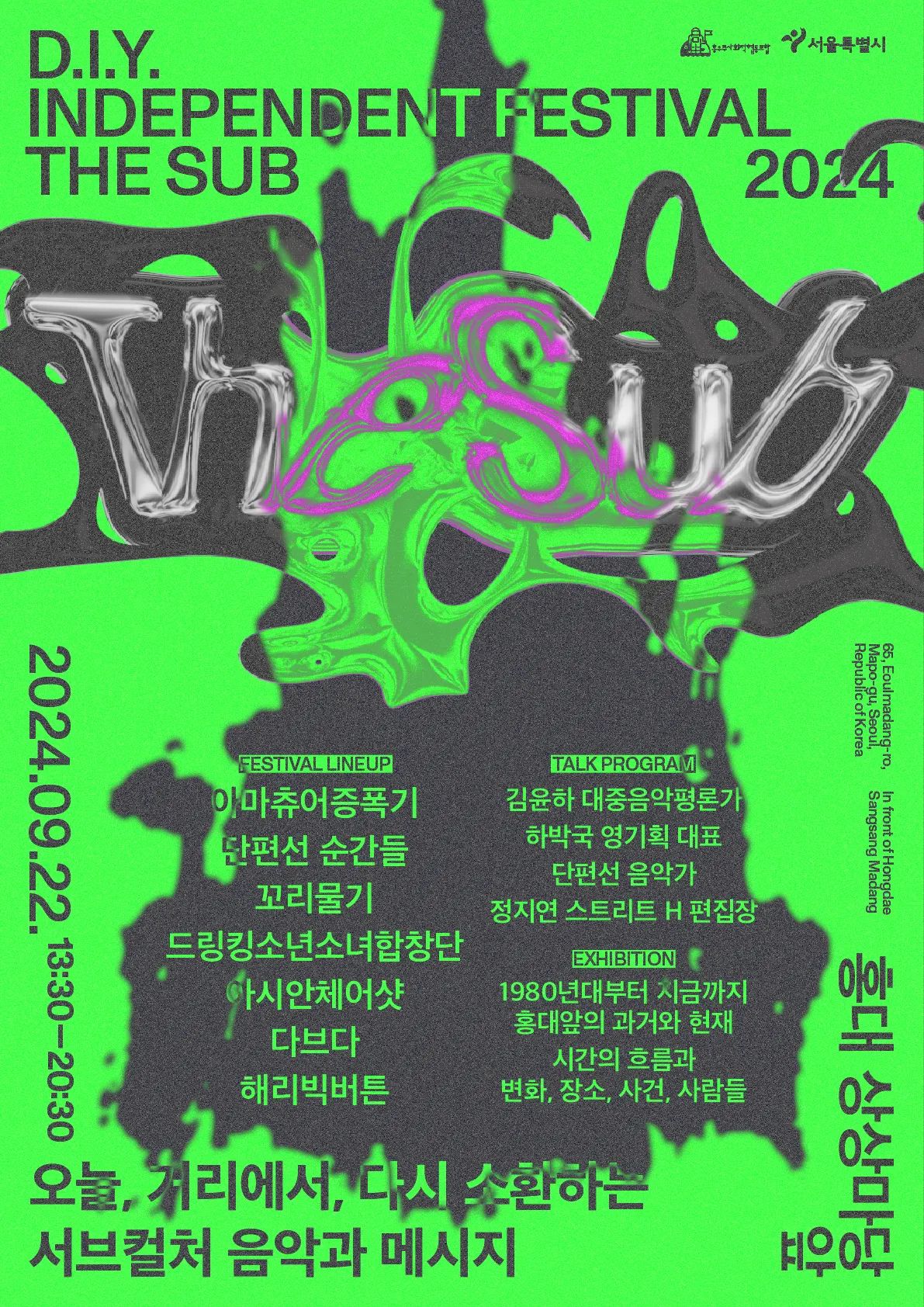 올해로 3년 차를 맞이하는 THE SUB는 서브컬처, 거리 문화를 조명하는 축제입니다. “오늘의 서브컬처, 오늘의 난장판”이라는 슬로건으로 2022년 홍대 상상마당 앞 거리에서 시작되었습니다. 2023년에는 신촌 스타광장, 명물쉼터에서 진행되었지만 2024년 올해는 다시 홍대 상상마당 앞 거리로 돌아옵니다.