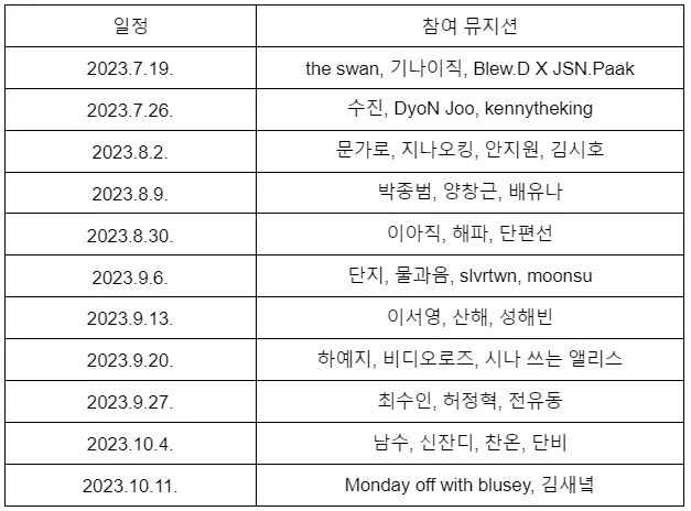 일시 : 2023년 7월 19일 ~ 10월 11일 매주 수요일 8시 (총 11회)