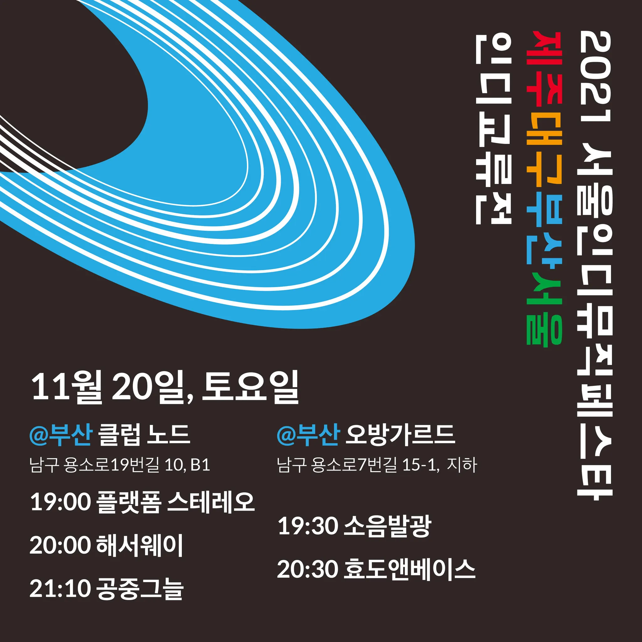 출연 : 플랫폼스테레오/ 소음발광/ 해서웨이/ 공중그늘/ 효도앤베이스